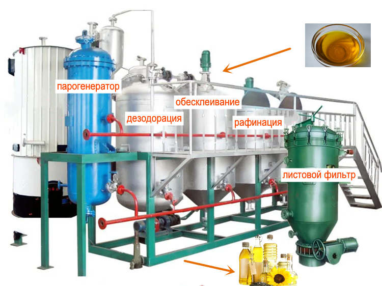 В целях улучшения качества и сроков хранения сырое масло будет подвергаться рафинации:обесклеивание,нейтрализация, обесцвечение и дезодорация.